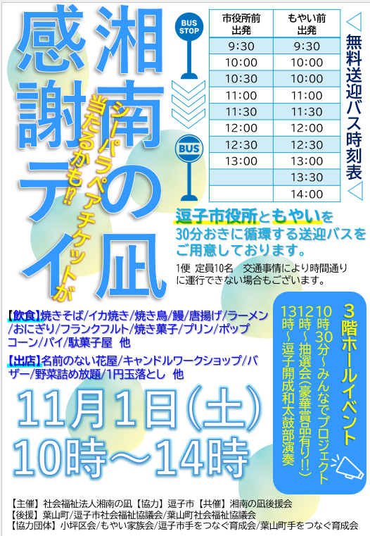 湘南の凪感謝デイが11月1日(土)に行われます!