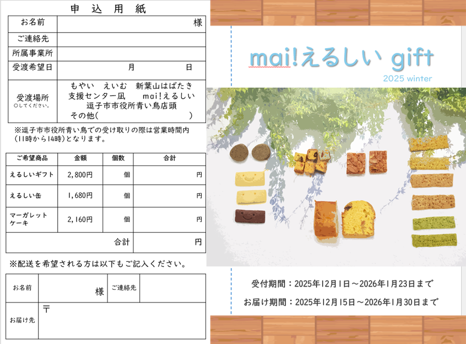 お問い合わせ 046-887-0583 mai!えるしい まで(平日8:30~17:15)